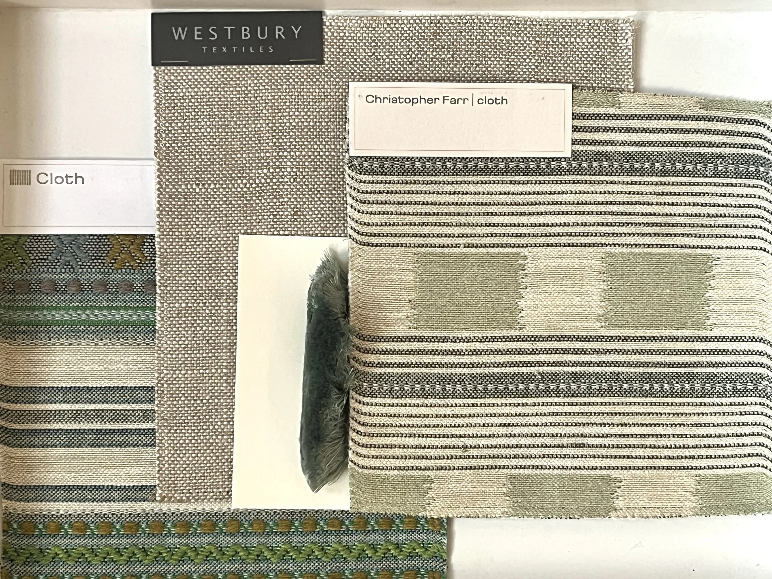 Current favourites: Christopher Farr fabrics, Samuel & Sons trims, and upholstery from Chase Erwin. Looking forward to our final meeting.