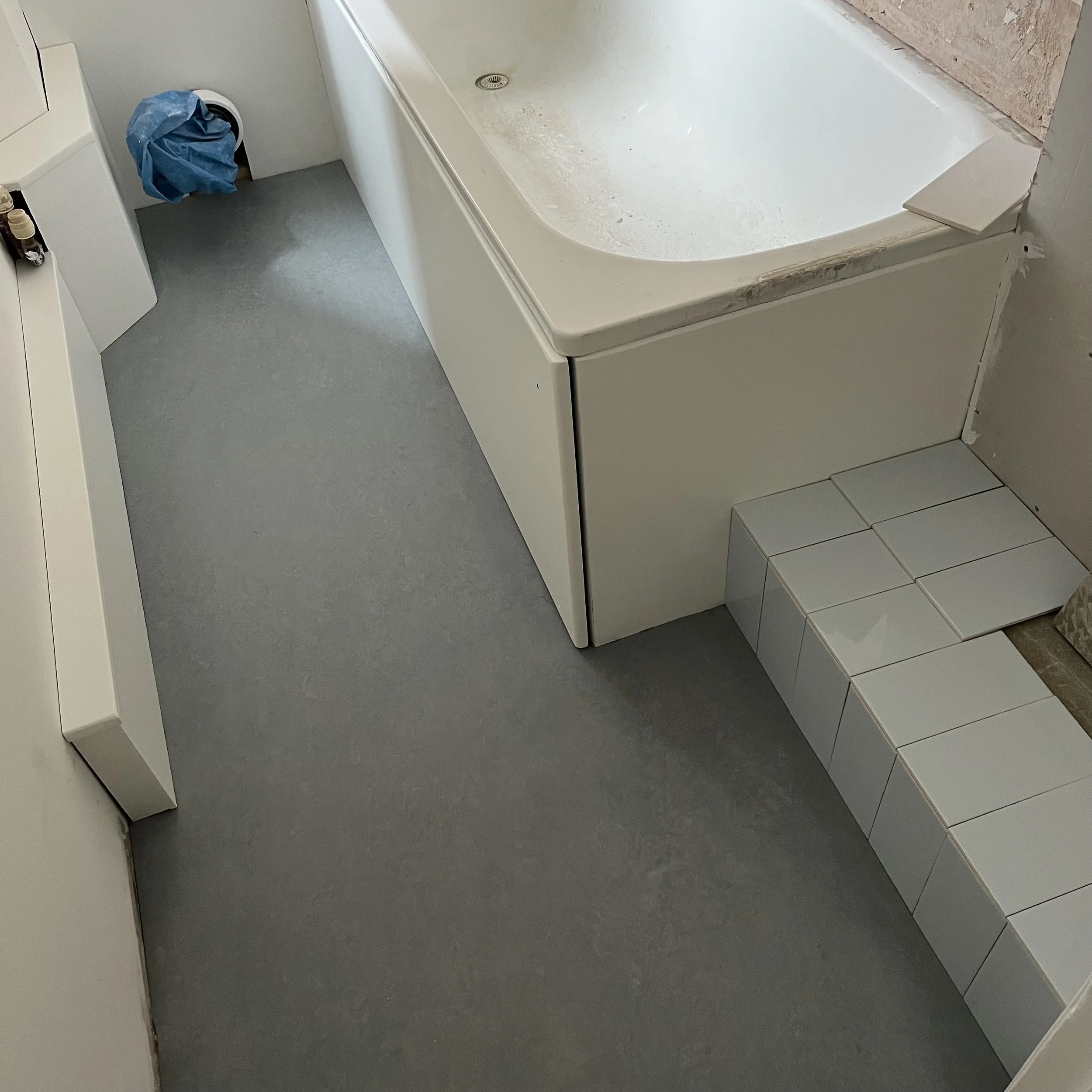 The original carpet flooring was over 20 years old and had to be removed! I’ve chosen Forbo Marmoleum, a natural, durable, and environmentally responsible flooring that works beautifully in bathrooms and kitchens. It aligns perfectly with how I want this home to function—healthy, practical, and sustainable.